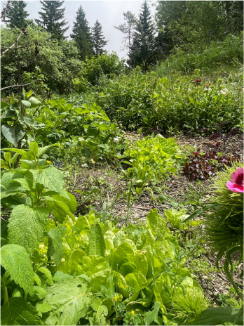 • Jardin potager : nous cuisinons le plus possible les produits directement issus de notre jardin potager pour préparer nos repas.