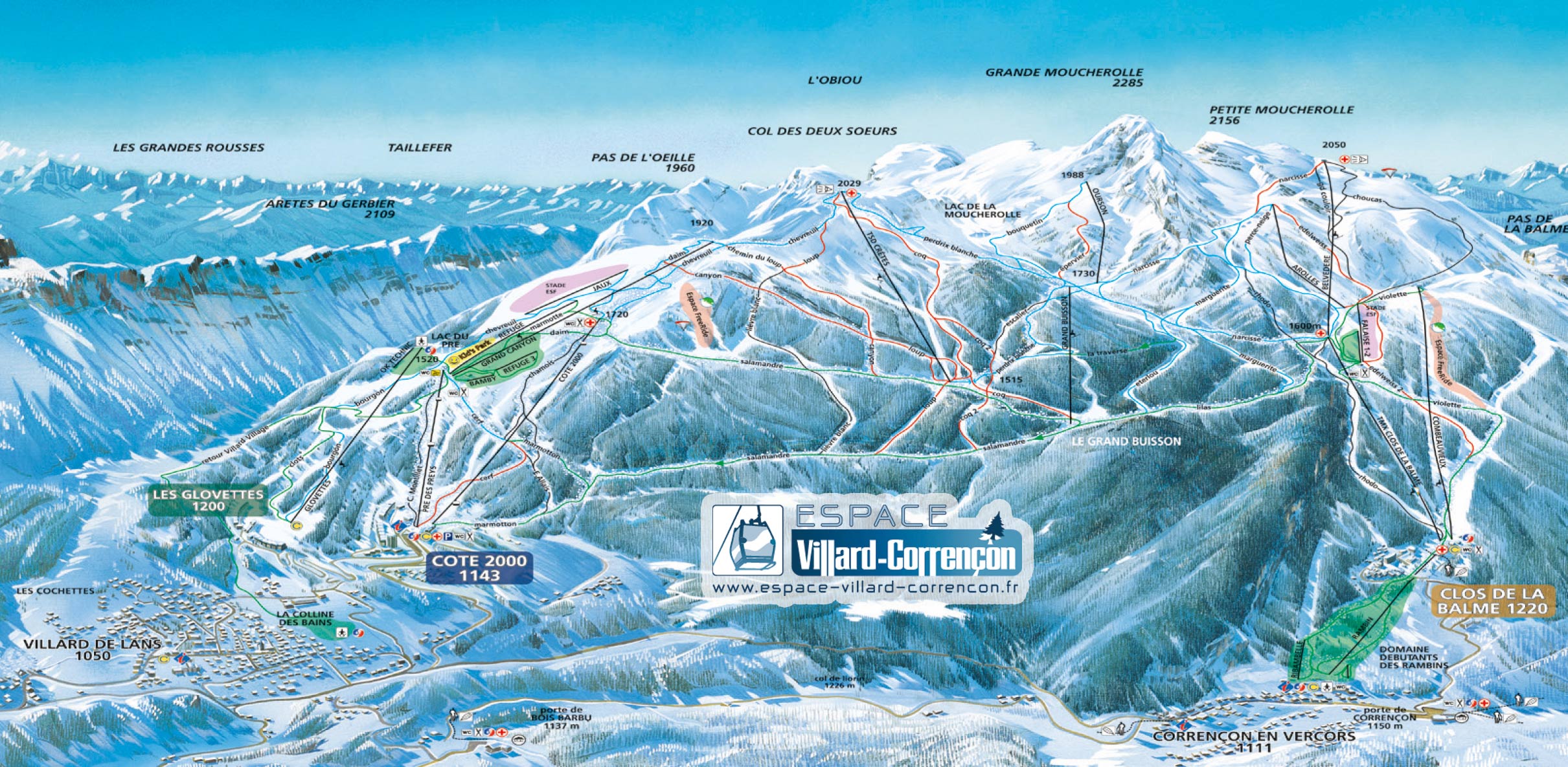 Plan des pistes alpines. Cliquez sur l’image pour voir en grand